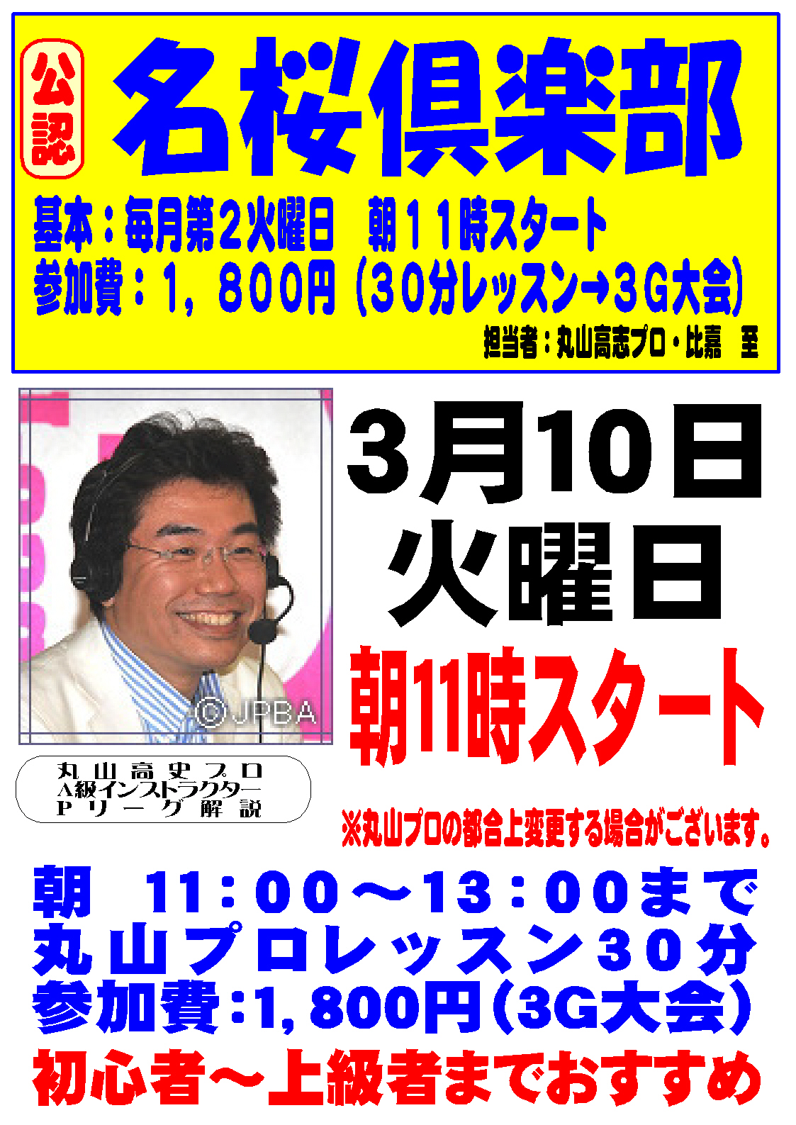 JPBAの丸山高史プロが楽しく指導します。